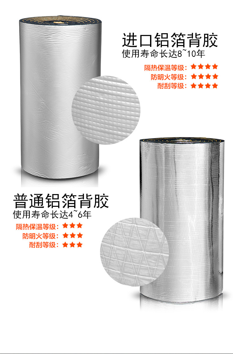 橡塑貼面優(yōu)勢(shì):鋁箔貼面橡塑保溫板,是可以將不同類別的鋁箔紙粘接到橡塑板材的表面,采用鋁箔復(fù)合技術(shù)提高其阻濕性能,延緩材料老化的速度,抗氧化性能更強(qiáng),完全避免了橡塑材料表面龜裂的缺陷,大幅提高了材料的使用壽命。而且外貼不燃鋁箔,進(jìn)一步提高了保溫層的防火性能。