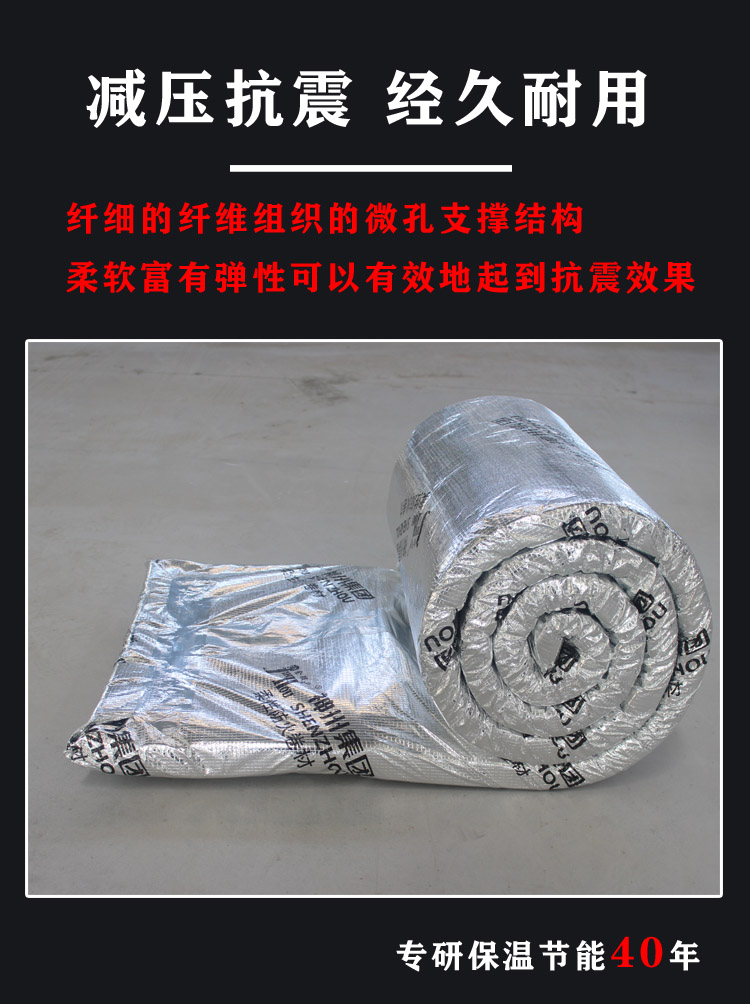 耐高溫無機纖維卷毯耐溫高達1100℃,高溫下導熱系數(shù)極低具有優(yōu)秀的耐火性能和隔熱性能。封裝于表面的阻燃方格筋復合鋁箔提供額外的作業(yè)強度,防潮性能優(yōu)異。