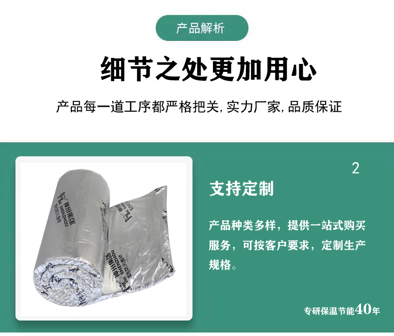 耐高溫?zé)o機(jī)纖維卷毯耐溫高達(dá)1100℃,高溫下導(dǎo)熱系數(shù)極低具有優(yōu)秀的耐火性能和隔熱性能。封裝于表面的阻燃方格筋復(fù)合鋁箔提供額外的作業(yè)強(qiáng)度,防潮性能優(yōu)異。